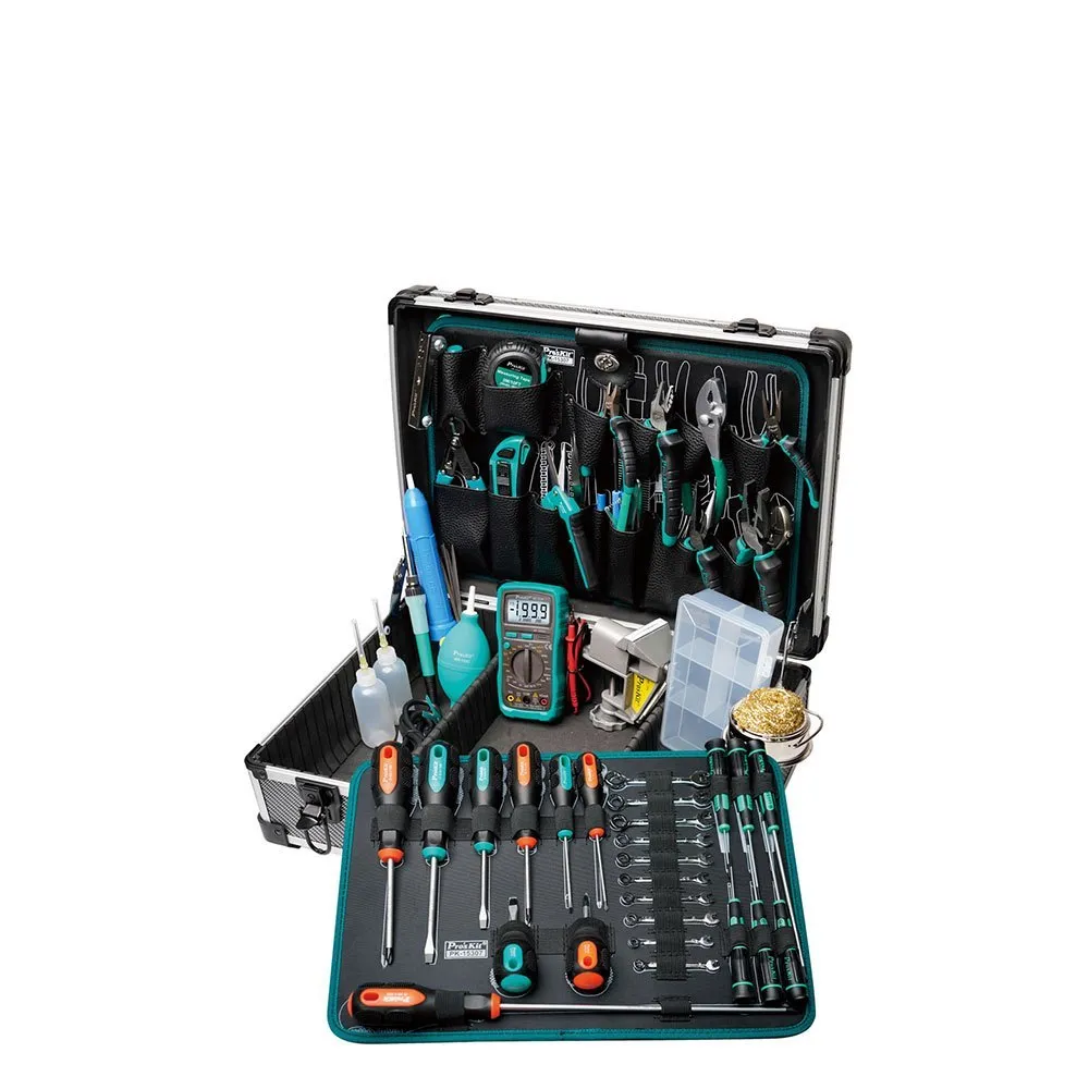 Electronic tool kit are includes several different instruments that an electrician needs, including spanners, screwdrivers, pliers, multimeters, gloves, hex keys, knives, etc. They are sufficiently insulated to with stand electricity up to 1000 volts.