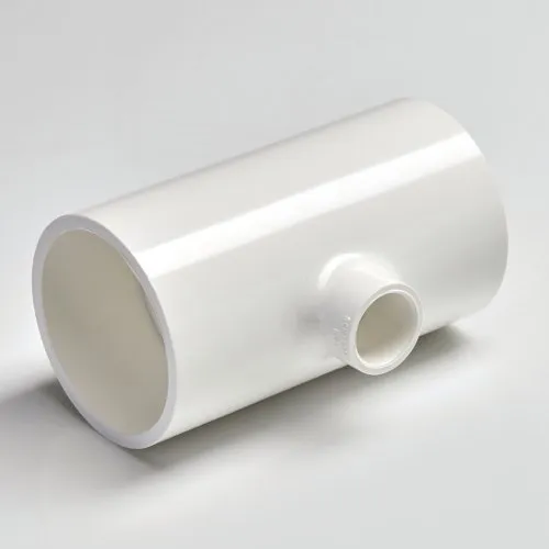 To control the flow of water inside the plumbing system, a reducer tee is employed. With a pipe running vertically from end to end and a pipe socket at a 90-degree angle, this Korrosafe fitting is complete.