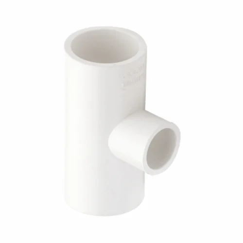 To control the flow of water inside the plumbing system, a reducer tee is employed. With a pipe running vertically from end to end and a pipe socket at a 90-degree angle, this Korrosafe fitting is complete.